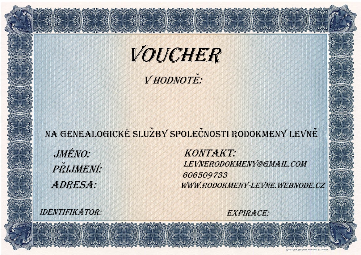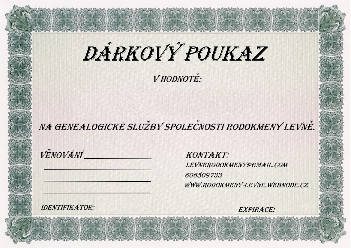 Je také možné zakoupit Dárkový poukaz na konkrétní variantu Rodokmenu, nebo Kroniku obce/domu.